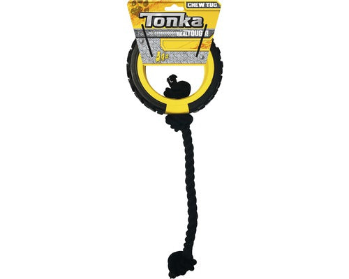 TONKATonka jouet pneu avec corde pour chiens vigoureux, ce jouet fournit des heures de plaisir à votre compagnon. Sa forme de pneu le rend facile à sais...